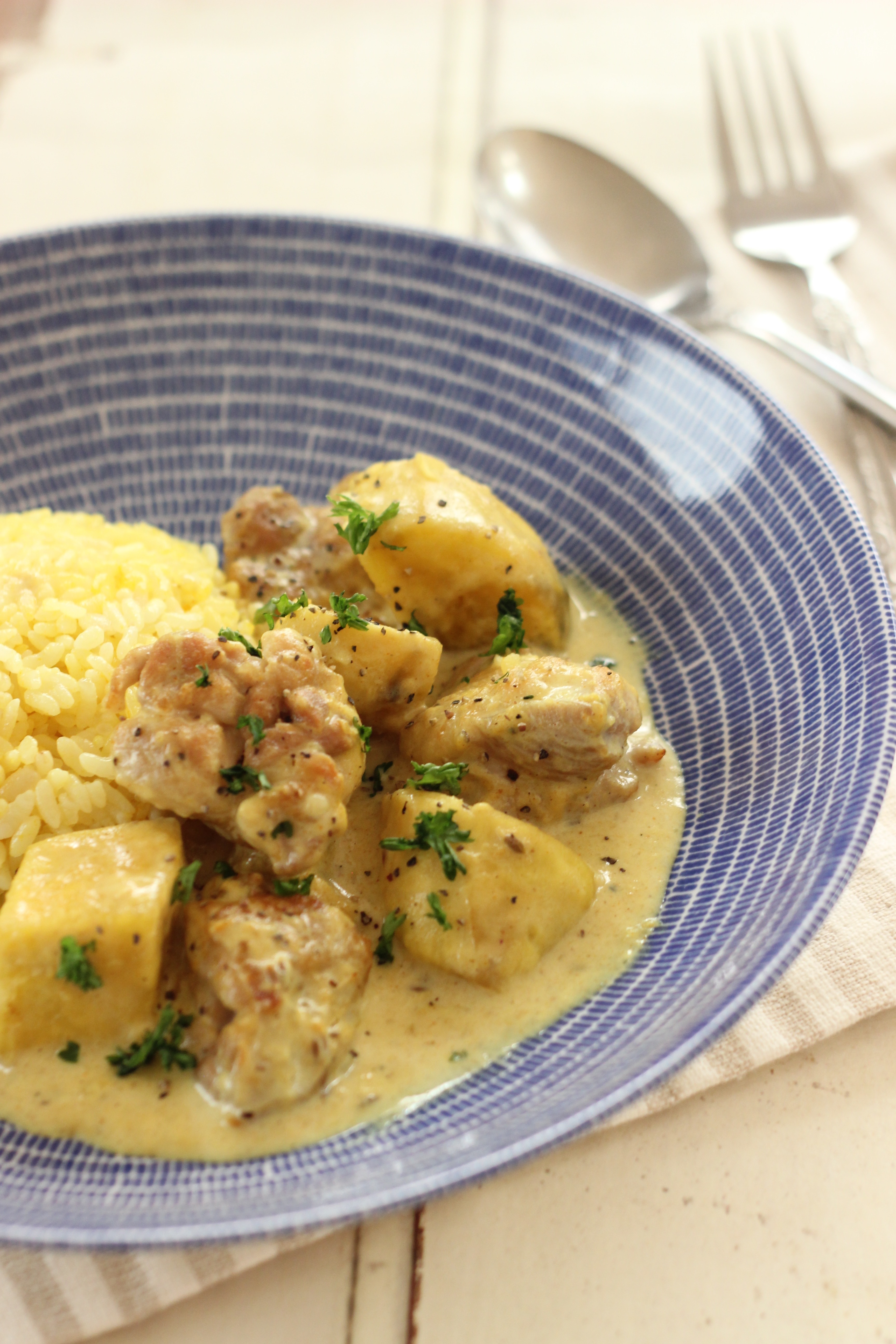 米粉を使うとダマができることなく簡単にとろみがつきます。ホワイトソースを作る時も米粉が便利です。