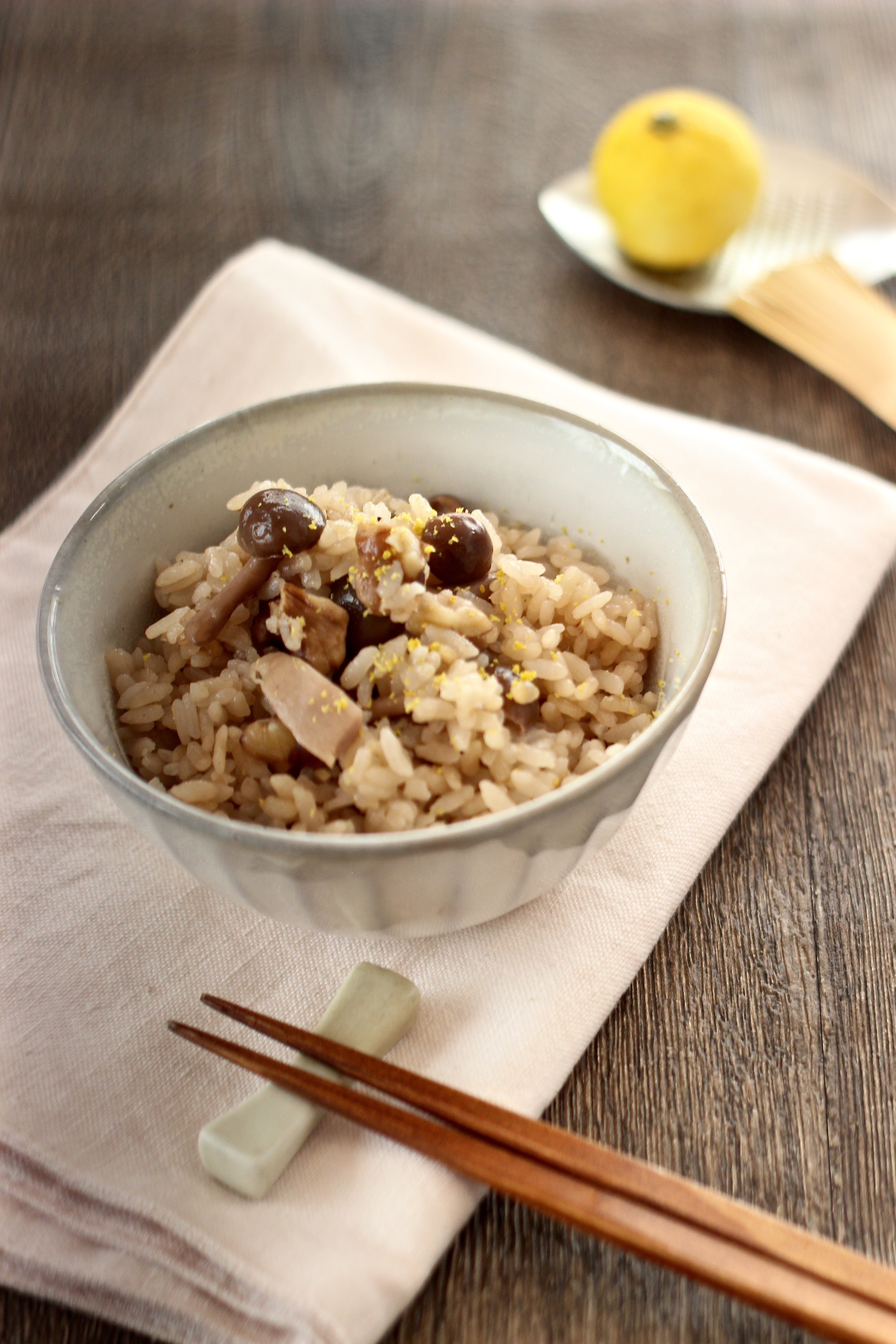 - 炊き上がったらさっと混ぜ合わせて器に盛り、すりおろした柚子の皮をのせる。