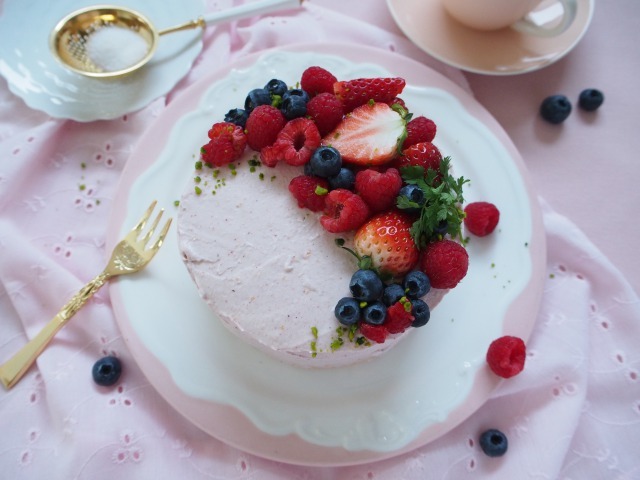 市販のスポンジケーキを使って、簡単にデコレーションケーキを作ります。クリームもスタイリングもピンクでまとめてフォトジェニックに♪