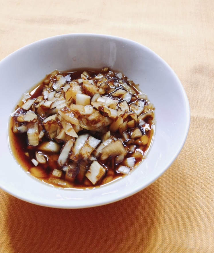 辛味がなく、しゃきしゃき食感の新玉ねぎの特徴を活かしました!そのままおつまみにしてよし、冷奴にかけてよし、ごま油を加えてドレッシングにしてよし、たれとして豚肉などと炒めてもよし!な万能な黒酢漬けです。