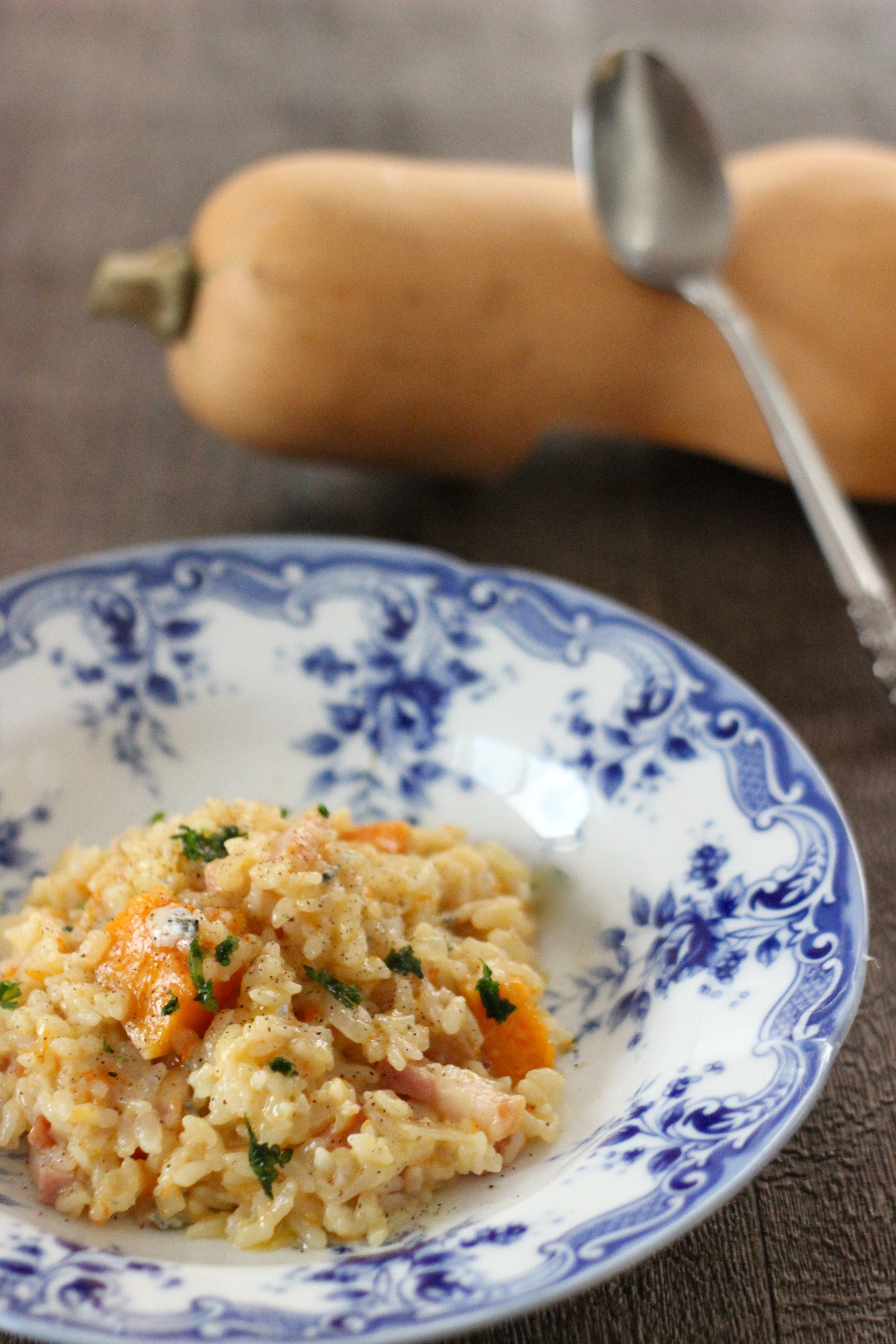 バターナッツカボチャの甘みと、ジャープなブルーチーズがマッチしたリゾットです。