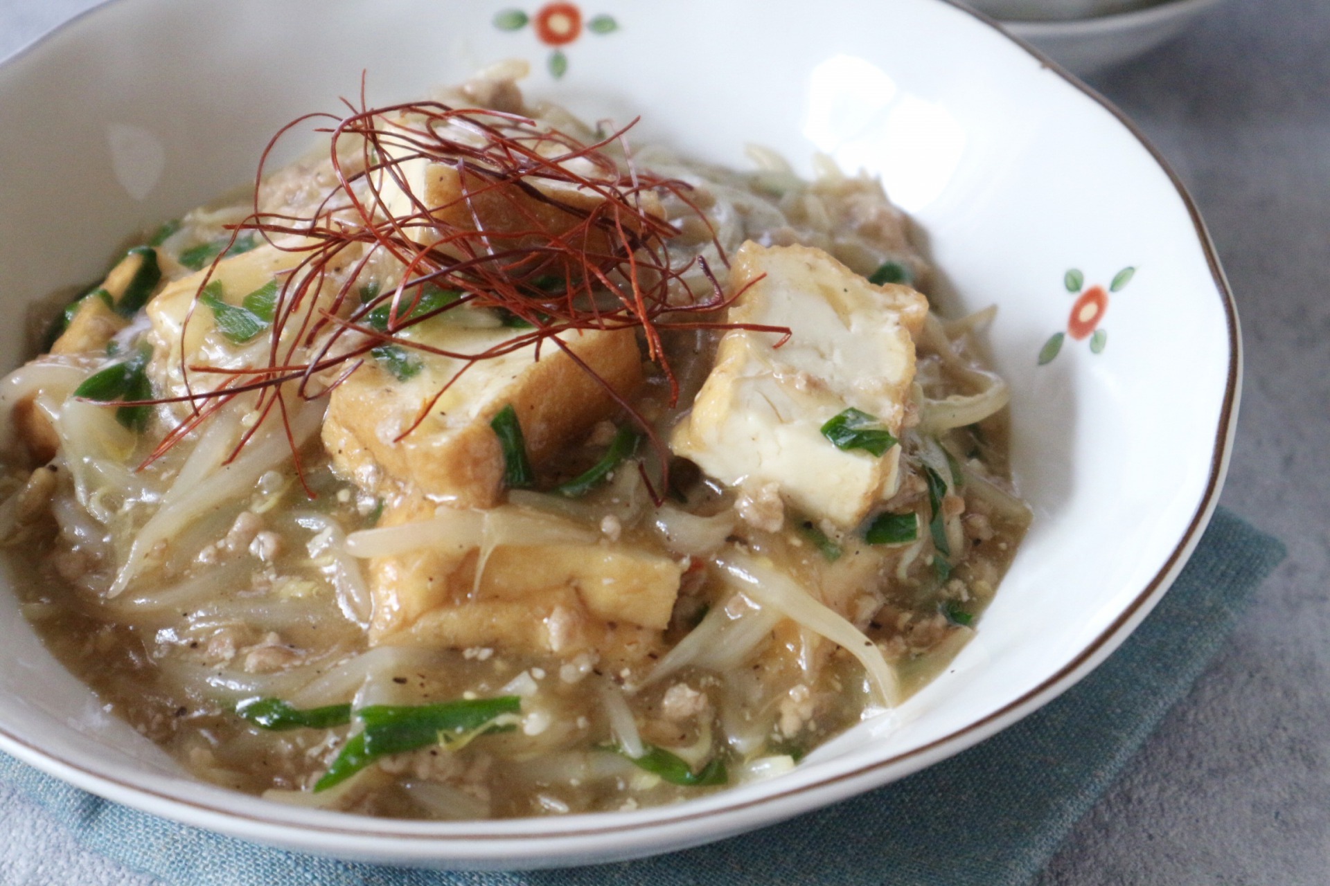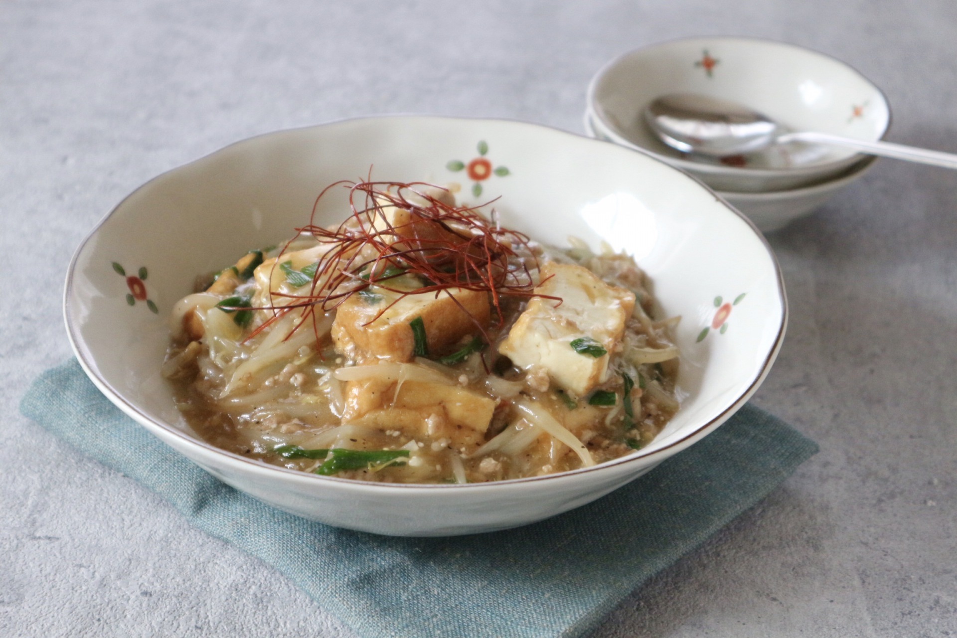 豆腐の代わりに厚揚げを使った食べ応えのある麻婆豆腐です。
