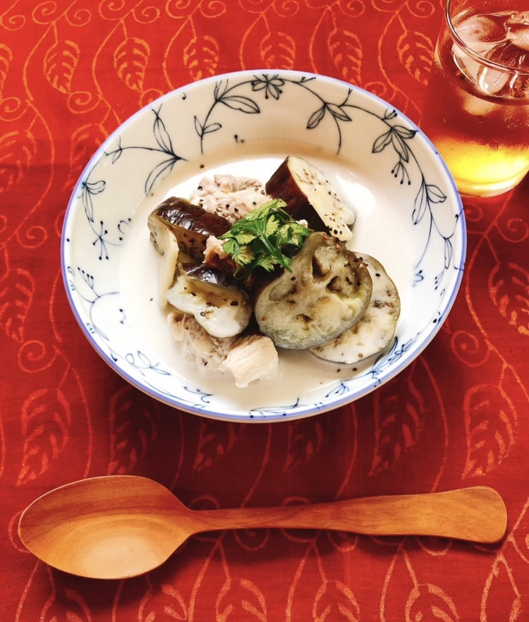 - ぱぱっとできる!トムカームー風スープ(タイ風 豚肉となすのココナッツミルク煮)