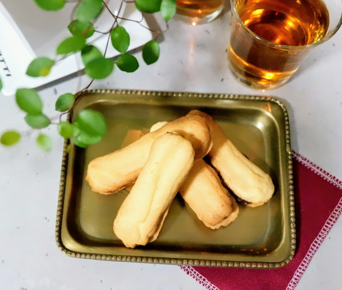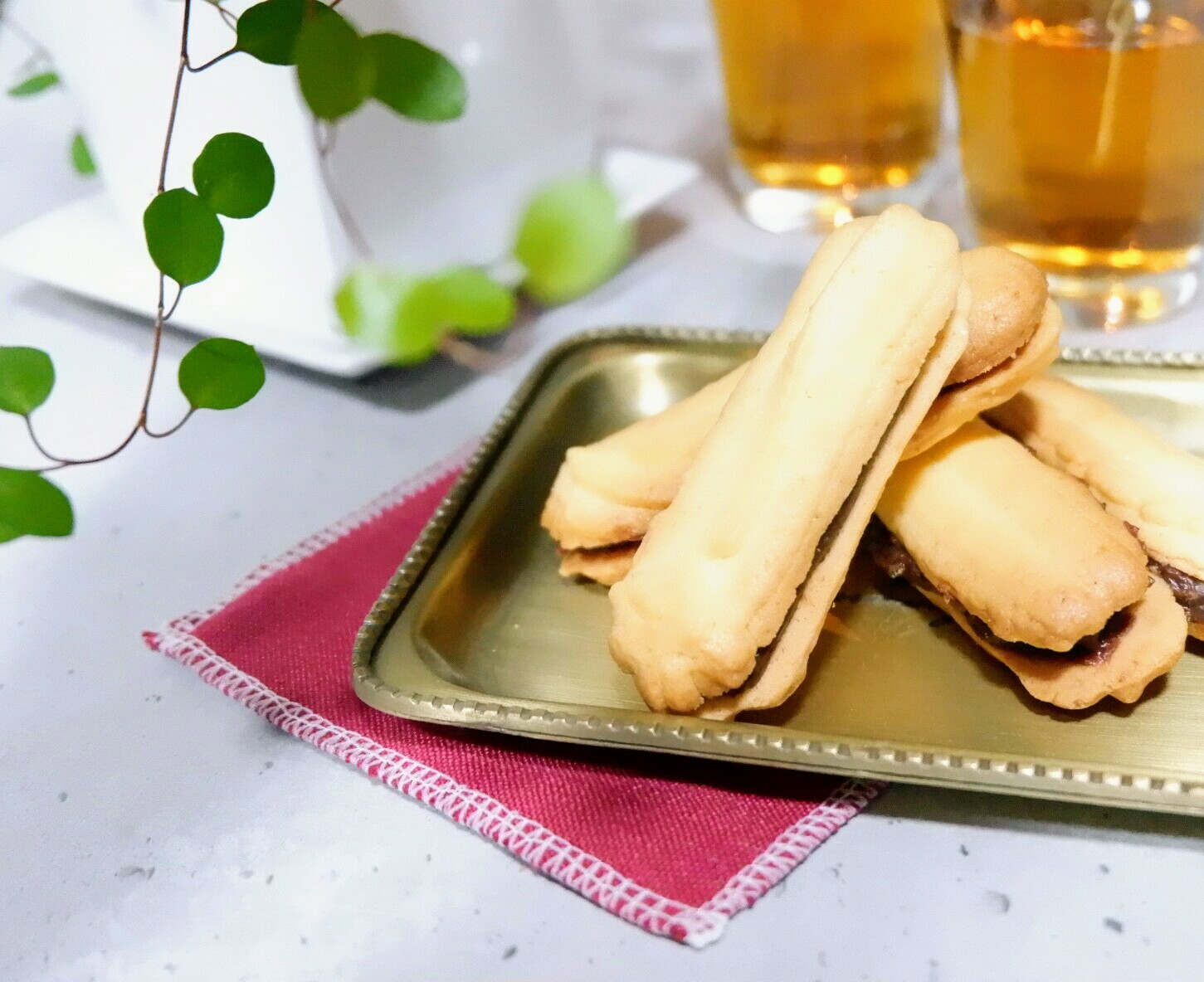 - 絞り袋に2を入れて、オーブンシートに6㎝長さに絞る(サンドするため、対になるように絞る)。