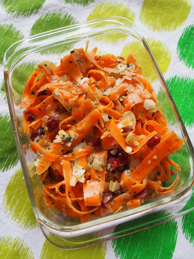 人参をピーラーで薄くスライスするので味が馴染みやすく見た目も新鮮です。