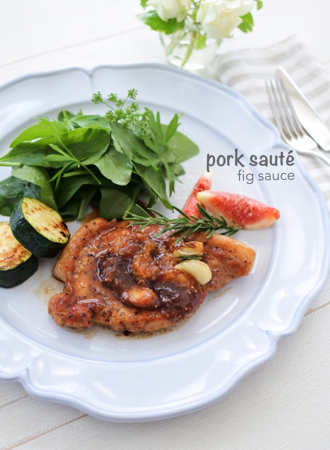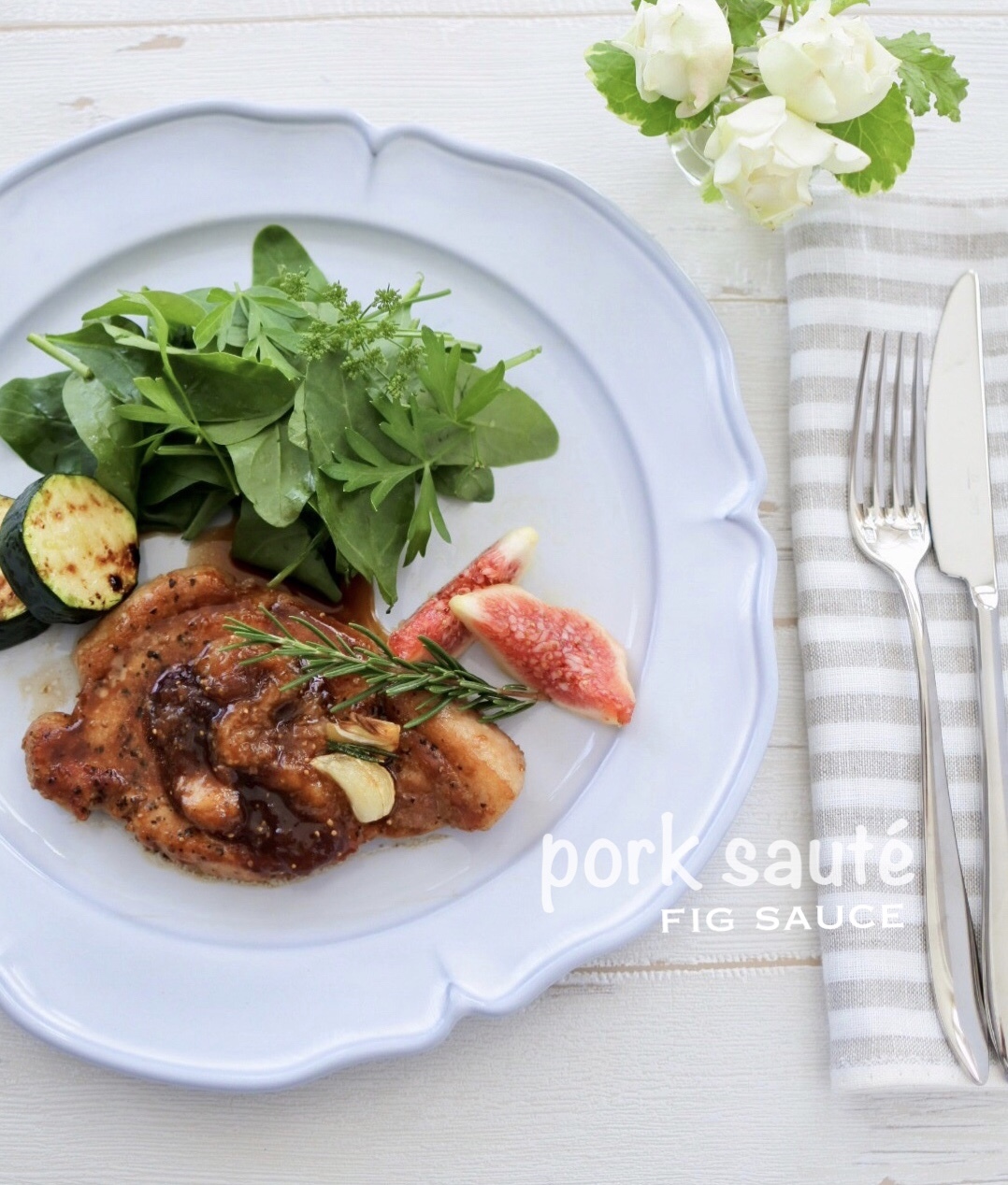 ポークソテーに、いちじくとバルサミコ酢のソースを絡めていただきます。 甘みと酸味の美味しいソースです。ご飯にもパンにも合います。