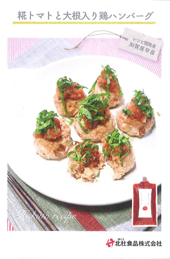 糀トマトをつなぎにしたヘルシーな大根入り鷄ハンバーグです。