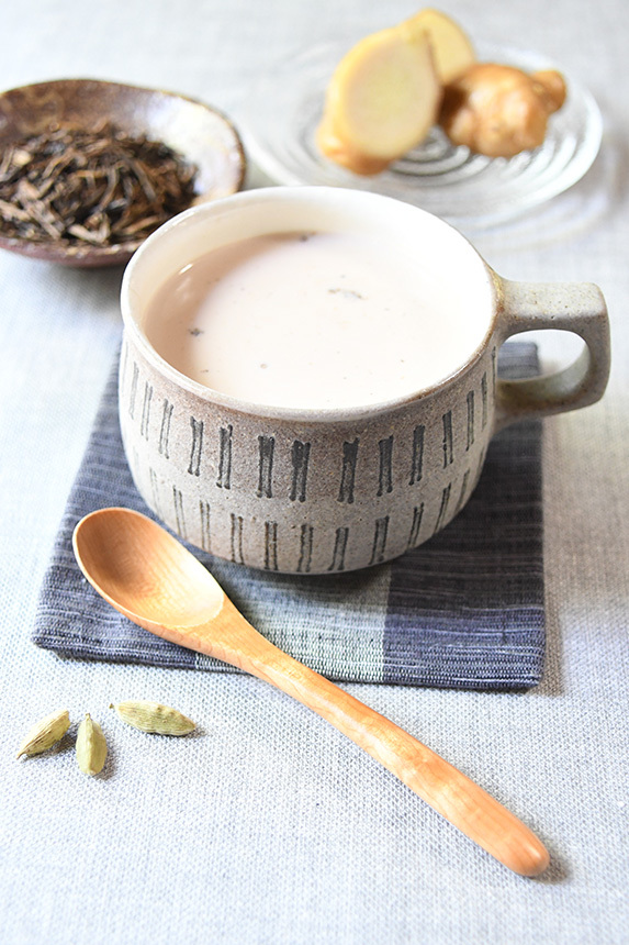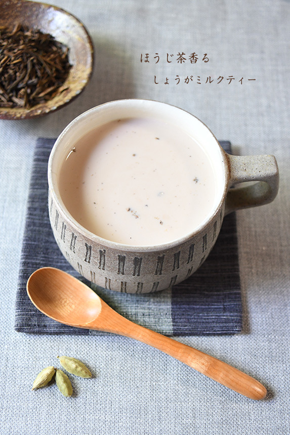 夏にも爽やかな、ほうじ茶が香ばしいしょうがミルクティーです。