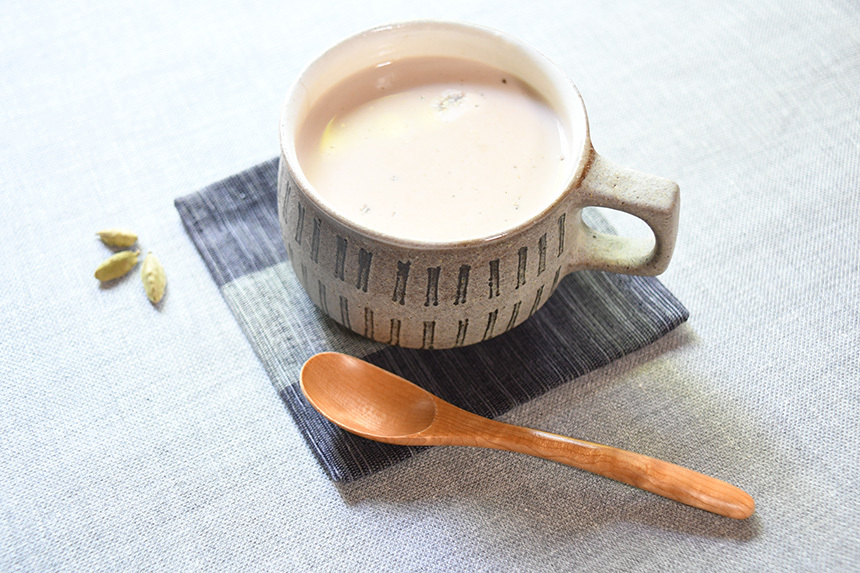 ほうじ茶の香ばしさを引き立てるために、スパイスはカルダモンを合わせてみました。