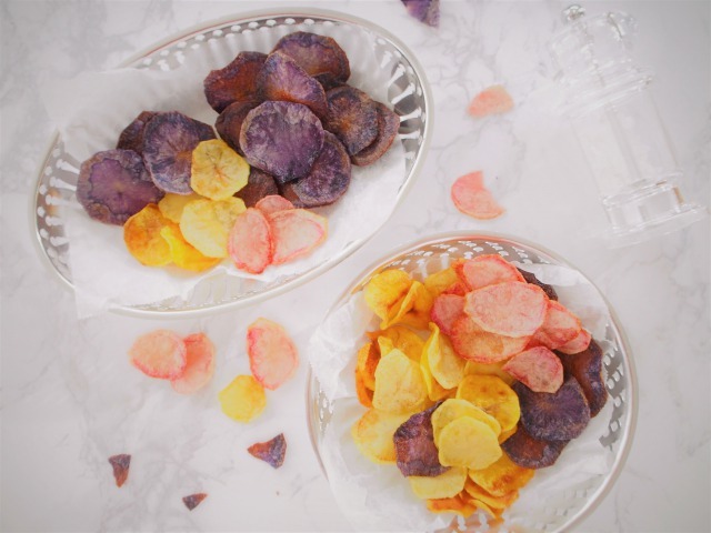 カラフルなじゃがいもを使ってポテトチップスも華やかに♪