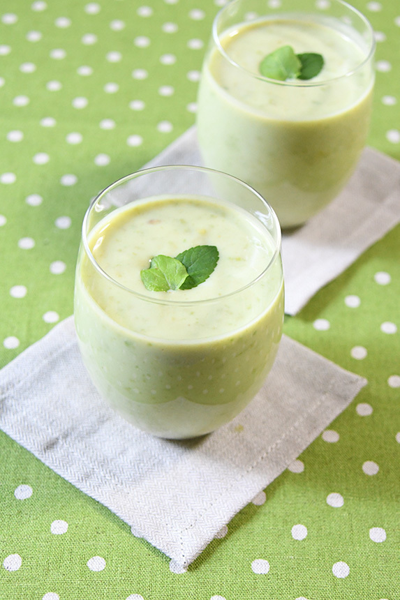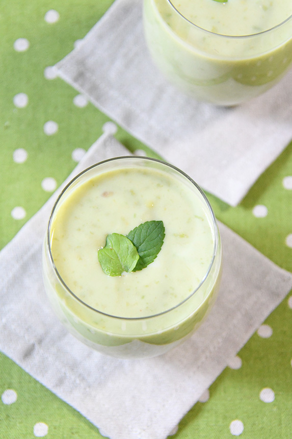 - 2をグラスに注ぎ、ミントの葉を飾る。