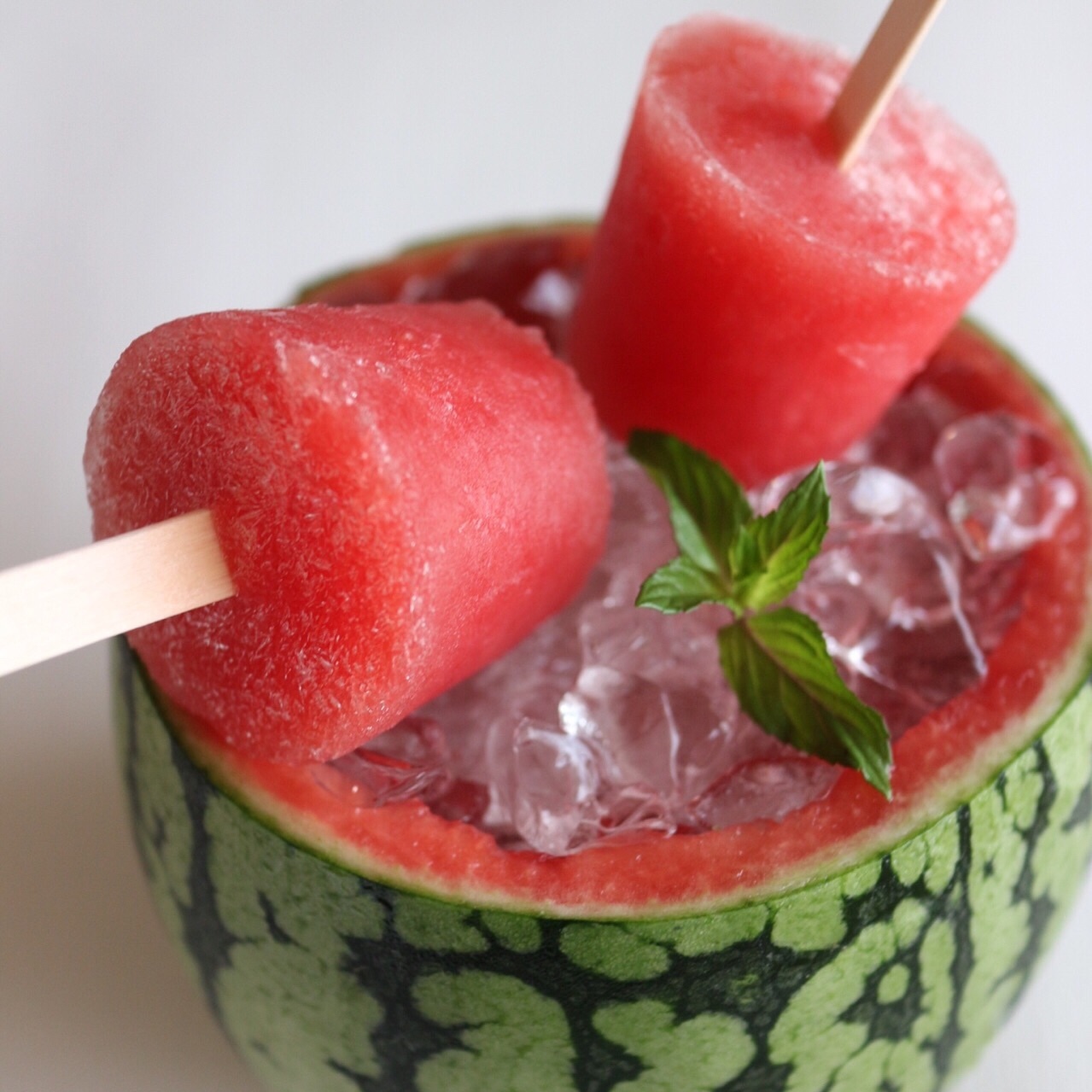 - スイカは、果肉をスプーンで取り出し、種を取る。